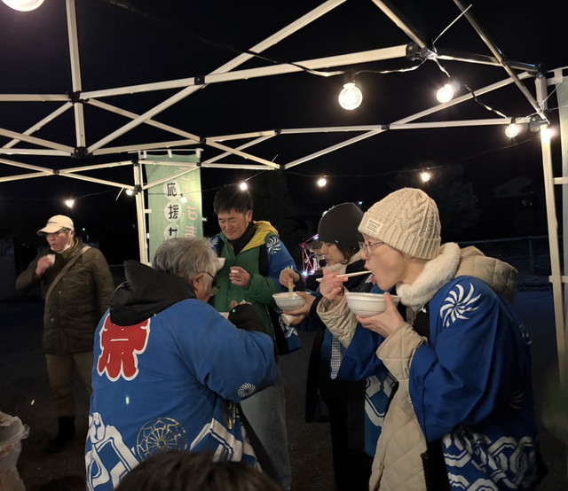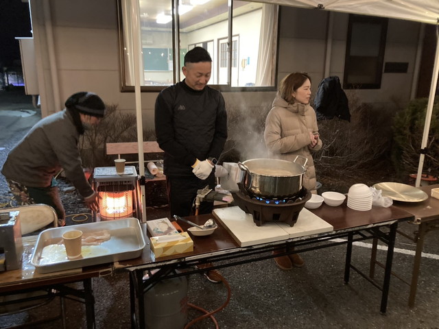 中学生の皆さん、役員の皆様、極寒強風の中本当にお疲れ様でした!豚汁&牛すじ串も大好評で、笑顔あふれる宵祭りとなりました。